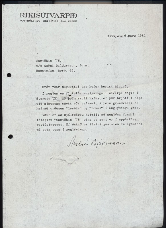 Þetta voru mörgum erfiðir tímar enda fátt um fyrirmyndir. Samfélagsumræðan var á einn veg. Dæmigerð var auglýsing laust fyrir 1980 þar sem eitt af stærstu bókaforlögum landsins kynnti nýja íslenska skáldsögu þar sem „spilling nútímans nær hámarki í morði og kynvillu“, og eftir að ýmsir skemmtistaðir höfðu meinað yfirlýstum lesbíum og hommum aðgang auglýsti nýr skemmtistaður í Reykjavík í blöðum að allir væru velkomnir – nema lesbíur og hommar, gagngert til að afla jákvæðrar athygli og vinsælda.